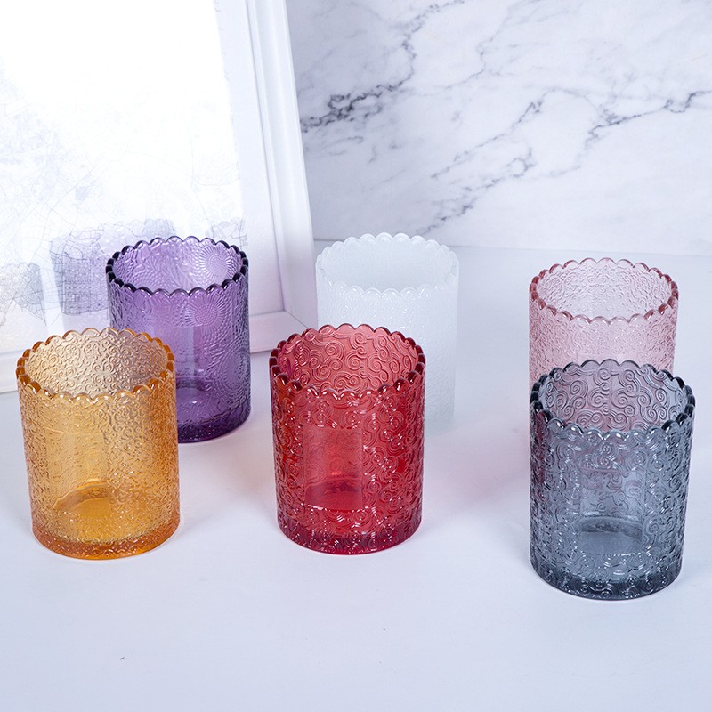 CP15 D:7.5cm*H:9cm 250ml Lace glass candle jar