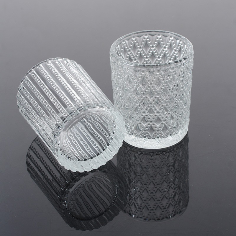 CP025 embossed pattarn clear glass jar
